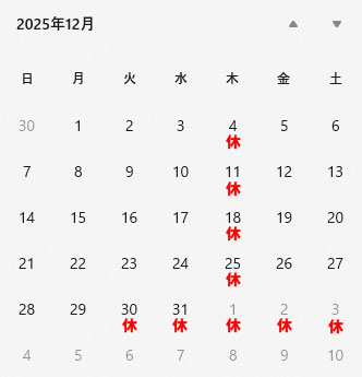2025年12月30日(火)-2026年1月4日(日)は年末年始のため